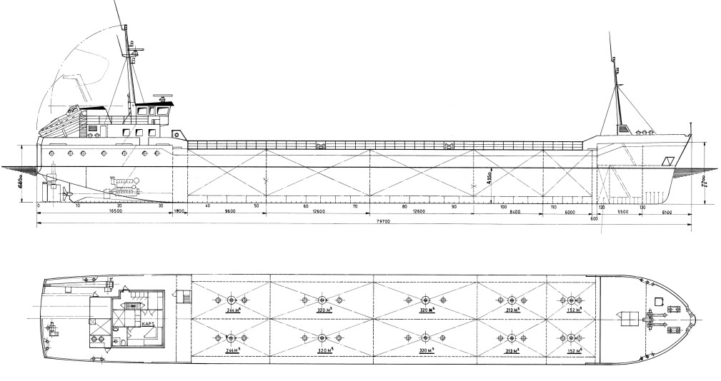 Dimensions m: Loa 79,90 Lbp 75,26 Beam 10,92 Depth 6.57 Keel-mast top 26