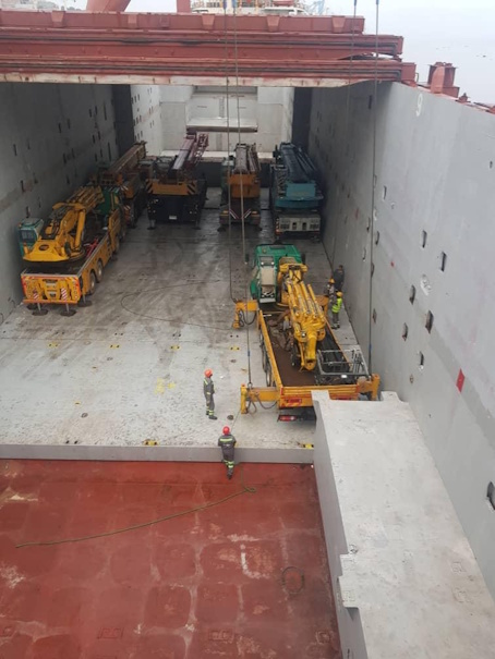 Cranes: 2 x 150 mt/ 13 m; combi 1 x 300, but presently downgraded to 250